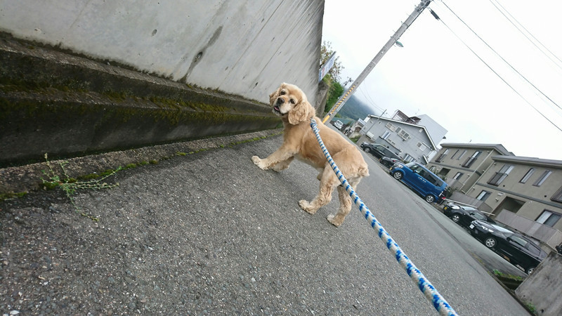 お天気がどんより曇り空ですが天気に負けず元気いっぱいルンルンとお散歩に行ってきました