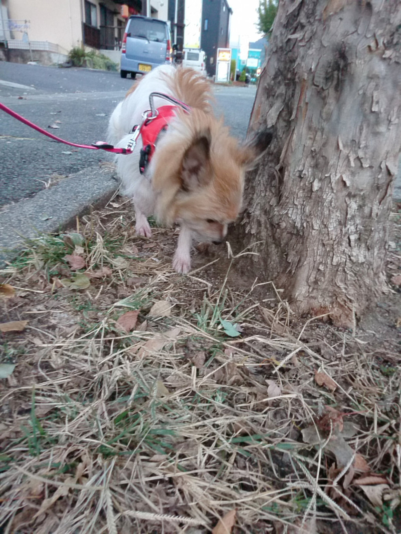 あちこち匂いをかぎながらお散歩をしたエレガちゃん
