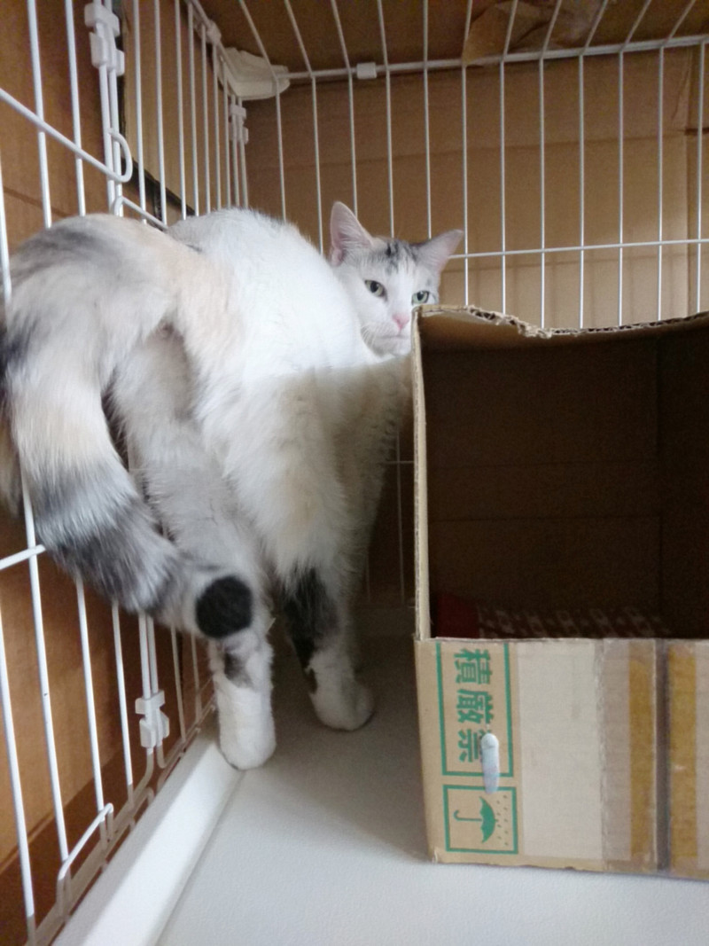 箱と壁の間が今日の定位置のココナッツちゃん