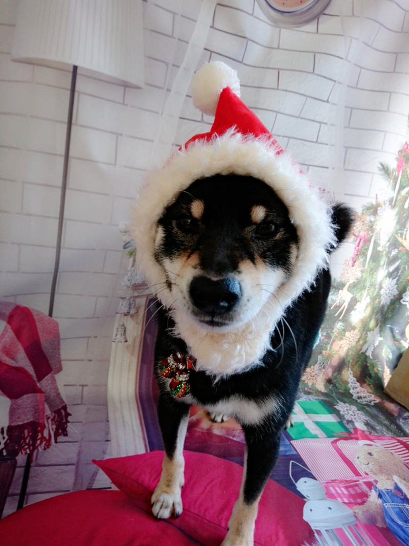 今日はサンタさんの帽子をスタッフにされるがままに被せられて写真撮影しましたよ