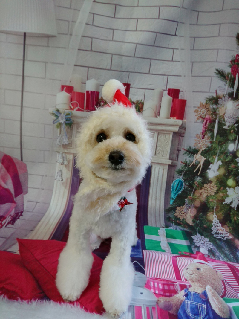 サンタさんの帽子をかぶって可愛く変身しましたよ