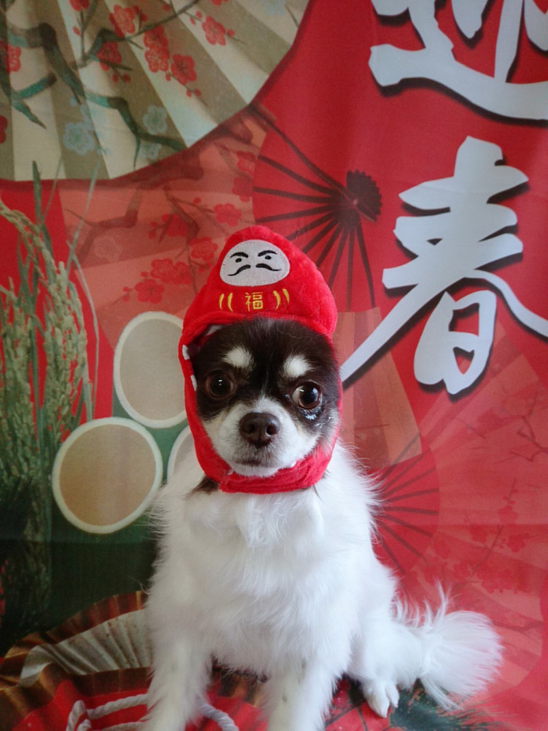 だるまの被り物もかぶって早くもお正月モードです