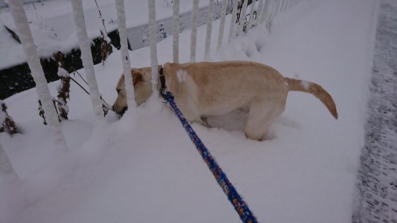 道中草に積もった雪にも興味津々でフェンス?の隙間からイタズラしてみたりもしました