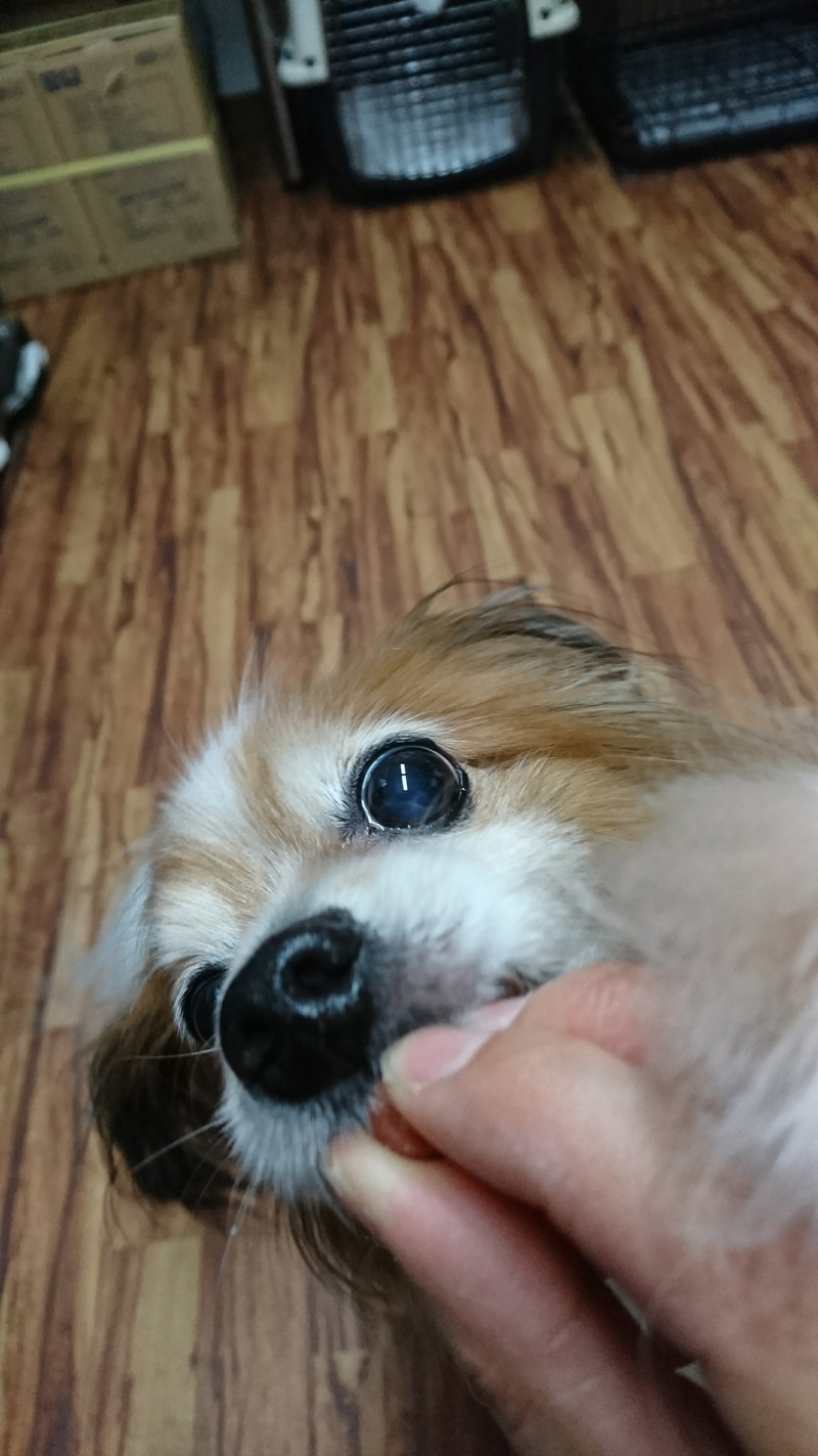 スタッフからおやつをもらい、お座りとお手を上手にしてからのおかわりはラムちゃんには頂きますの合図だったようで食べられちゃいました