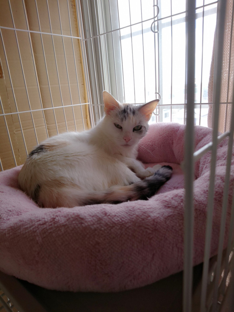ベッドからあまり動かなかったココナッツちゃんですが、お迎えが来たと分かるとスタッフのもとへ素早く来て、早く早く