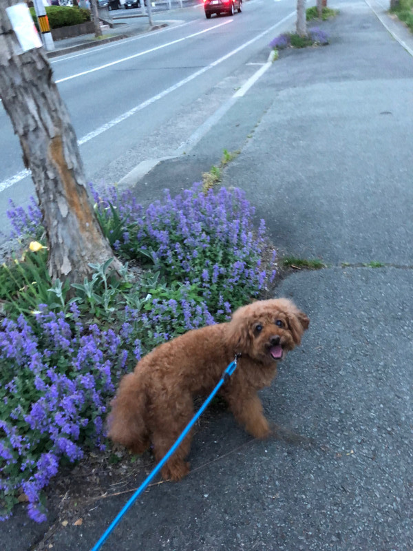 お散歩中、おトイレもバッチリしてくれて、夜に少しだけパンを食べました!🍞