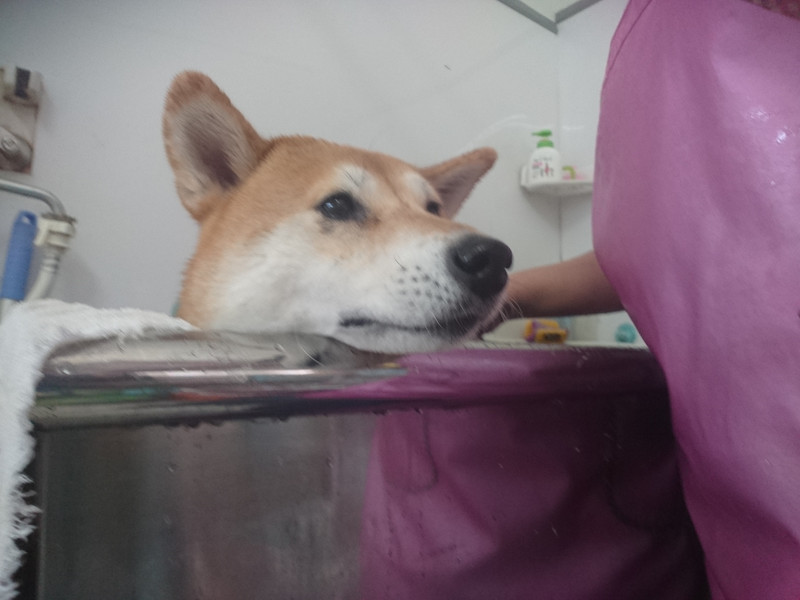 柴犬のモモちゃん グルーミングコース 炭酸泉