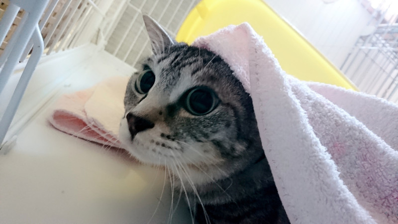 相方のふくちゃんはタオルの下に潜ってモソモソ…