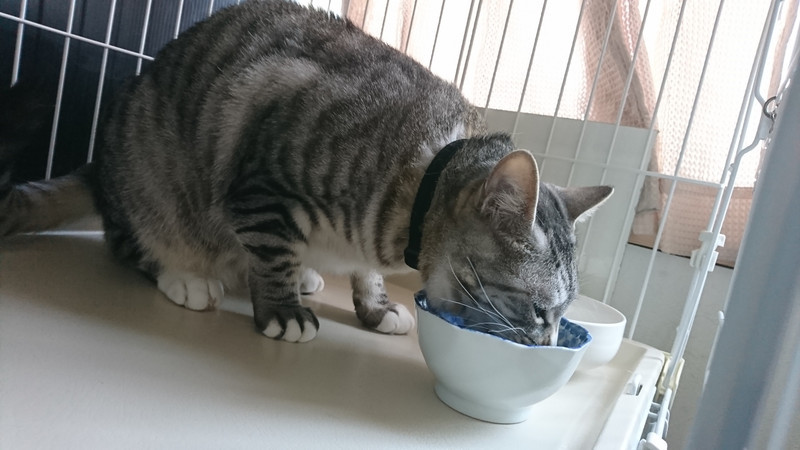 ふくちゃんはご飯をスタッフの前でも食べてくれるようになって今日は朝夕共に完食出来ました