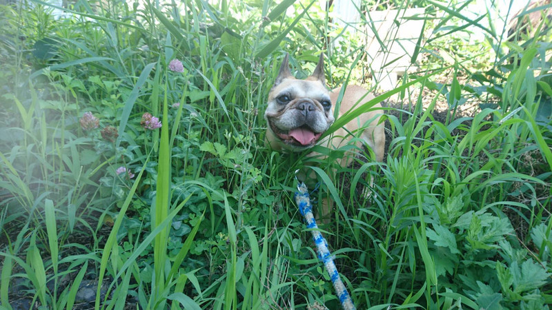 木陰で休憩中に草むらに入って遊びました