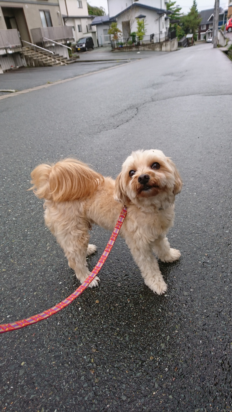 雨にも負けず元気いっぱいピョンピョン跳ねながら?お散歩に行ってきました