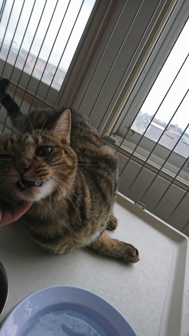 そば様ニャーニャーと一生懸命スタッフをようで何かを訴えておりますがベットからは降りてこないという