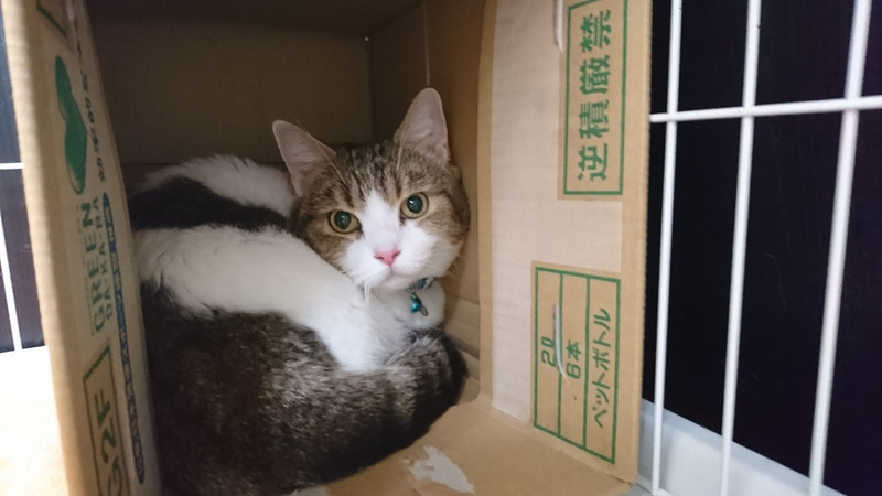 箱に入って落ち着いたらご飯ゆっくり食べようね!