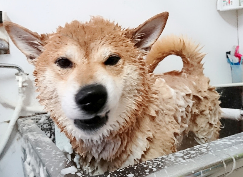 久しぶりのコロンブスちゃんのシャンプーに2人で泡泡になりながらスッキリピカピカになりました