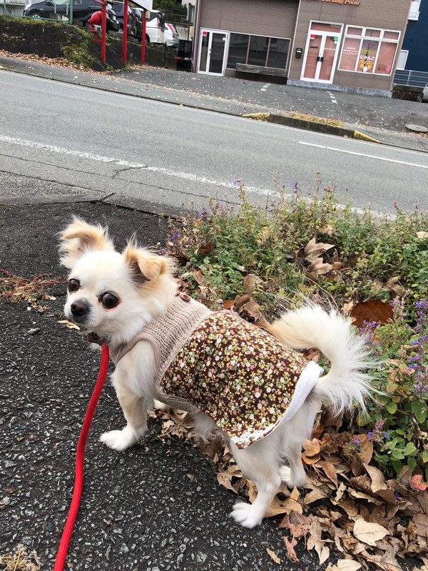 お散歩中落ち葉の中が気になったのか…くんくん🎶ごはんは、毎食ちょっとずつごはんをたべてお泊まり頑張ってます!👏
