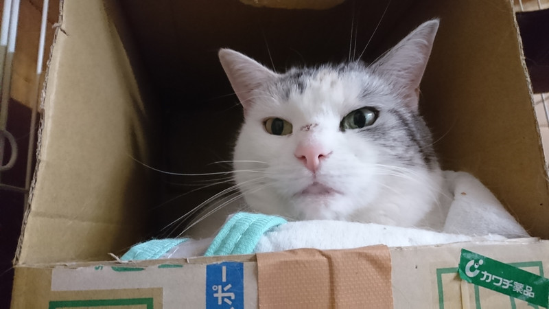 今日は箱猫しながら丸まってお昼寝中でした