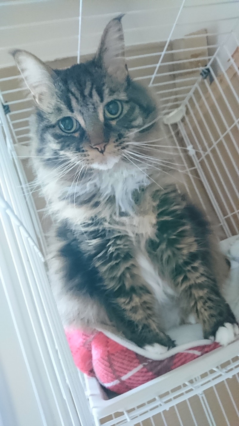 おトイレもバッチリしてくれて、スタッフにスリスリごろごろと甘えたアピールをしてくれています