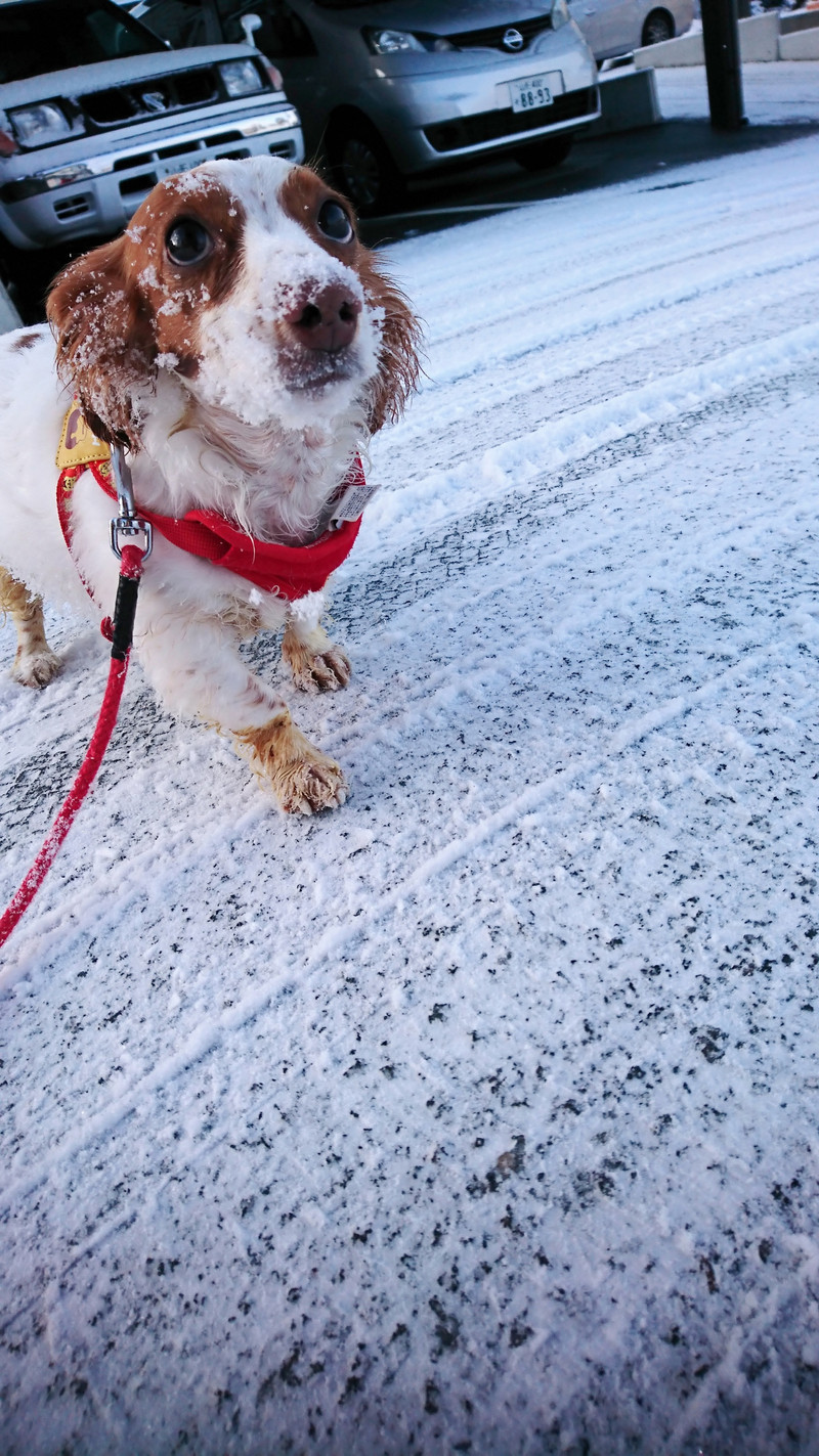 真っ白雪まみれになしながらもルンルン楽しくお散歩に行ってきました