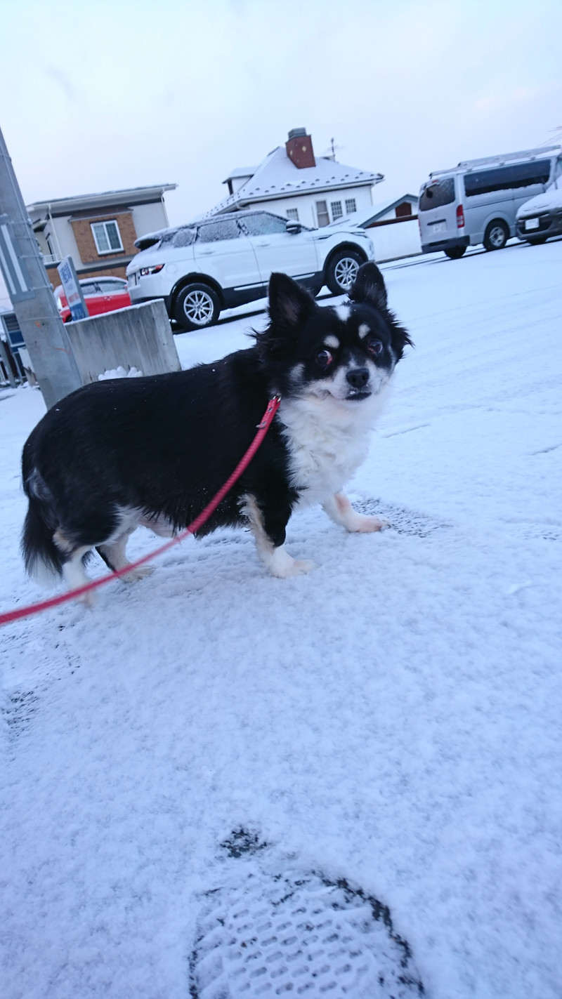 今朝はうっすらと雪が積もった上をテクテクお散歩してきました!