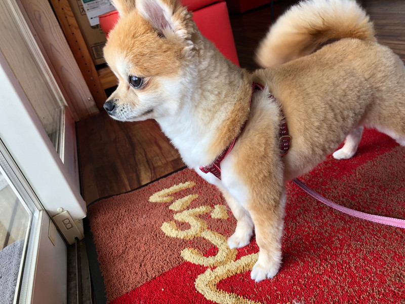 ママたちと離れて寂しそうに外を見つめていてすこし緊張気味でぷるぷる震えていましたが、お散歩のときはしっぽふりふりで楽しそうでした!✨🎶
