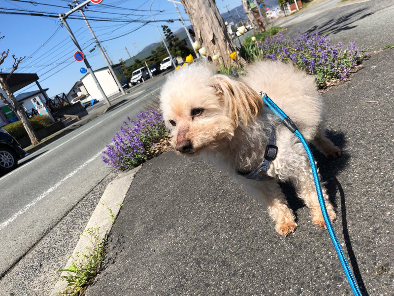 朝のお散歩はすこし眠そうなリオンちゃんでしたが、夕方はトコトコトコと早歩きでなんだか嬉しそうでした☺️
