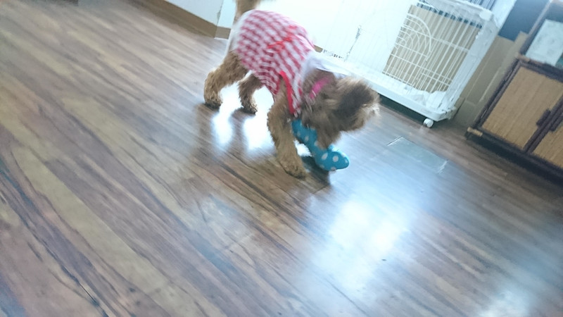 おもちゃを追いかけるキャンディーちゃんが激しくてカメラが追いつかない
