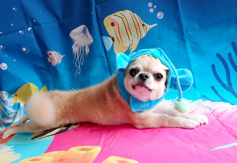 お魚さんの帽子を被っての撮影ではテンションが上がって後ろ足がスイスイ〜泳いでるよ
