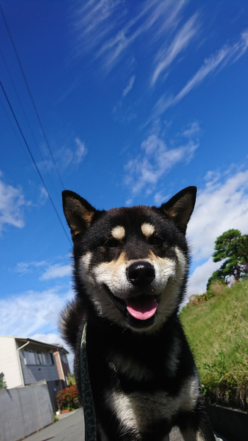 スッキリ晴れた今日は綺麗な青空をバックに満点の笑顔でお散歩に行ってきました