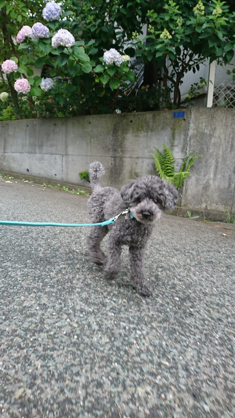 雨が降りそうで降らない微妙な曇り空な山形ですがお天気に負けず元気いっぱいお散歩に行ってきたゲンちゃん!