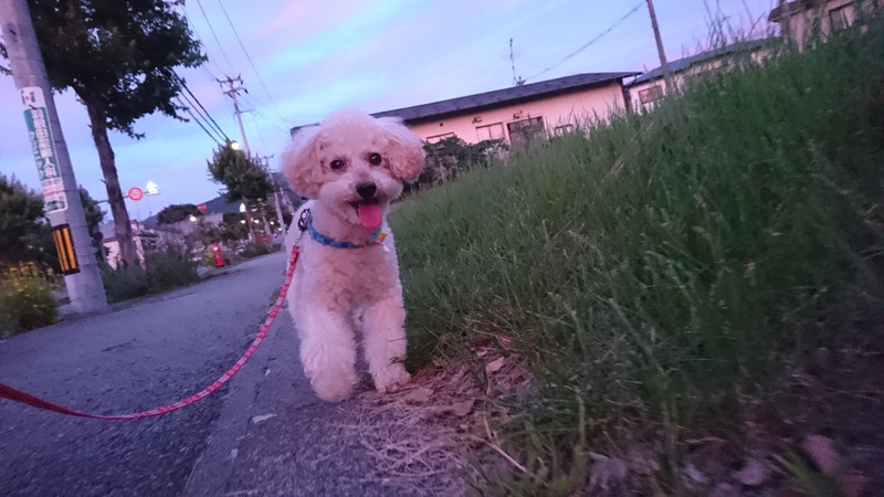 夕日を見ながら楽しくお散歩に行ってきたよ