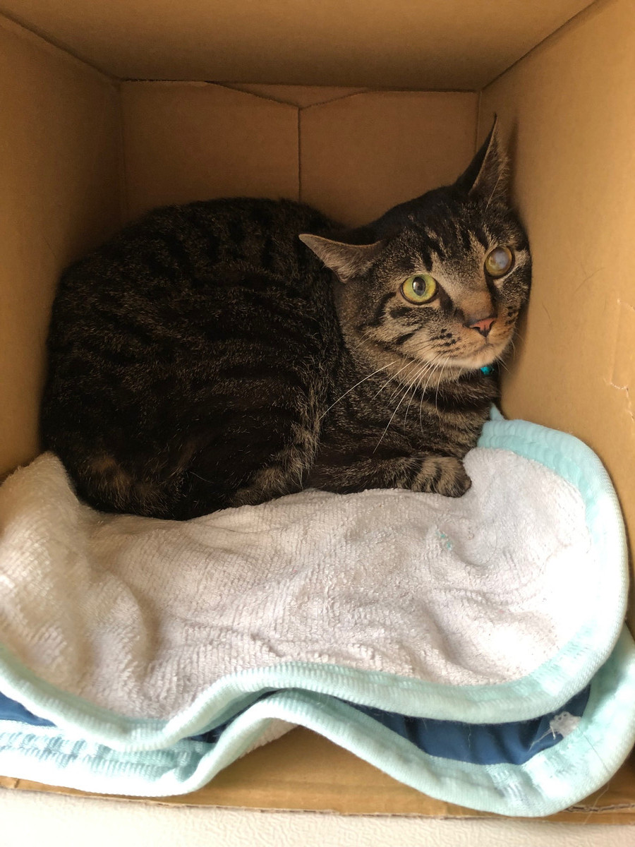 今回はじめてのご利用ということですこし緊張気味のにゃんちゅうちゃん💦スタッフが近寄ってもずーっと箱のなかでじーっと見つめていました😥食欲もあまりないようなのでだんだん慣れてくれることを祈るばかりです…💧