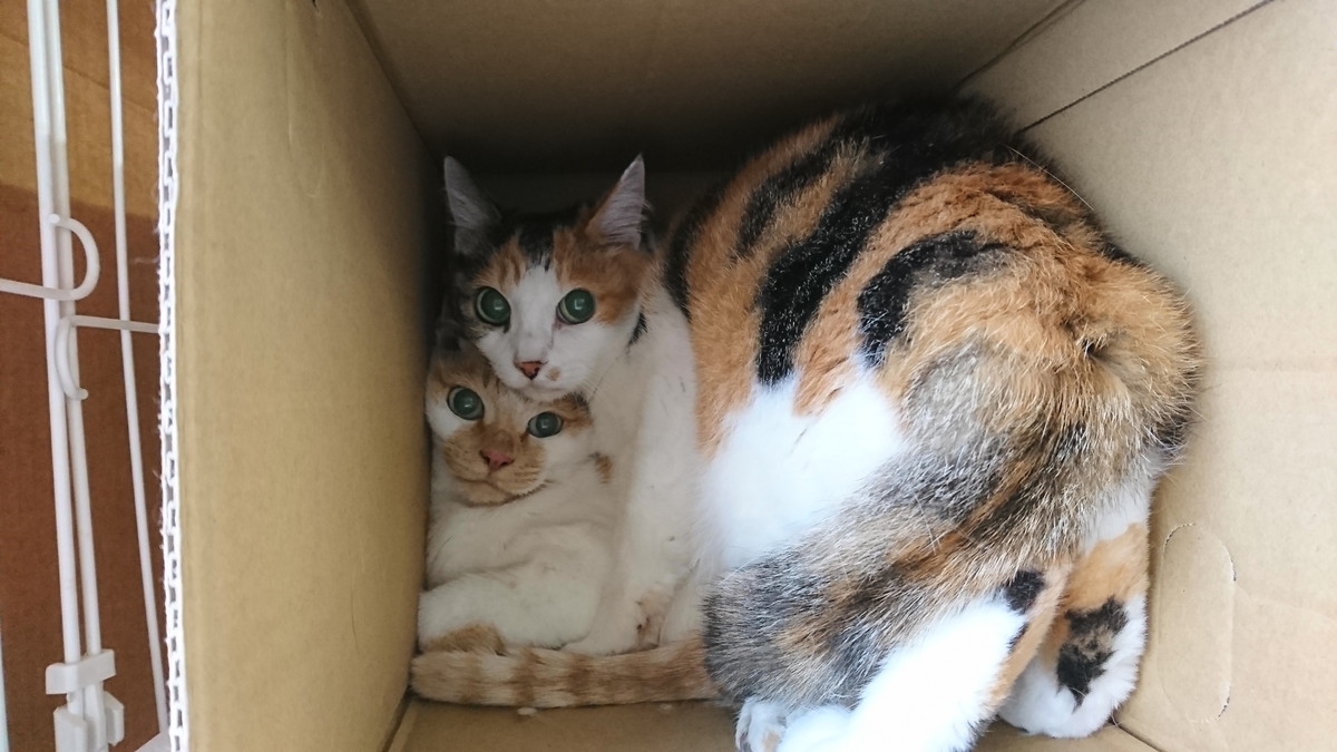 一晩たった本日ですが、朝は2人に動きはなく、箱の中にギューギュー詰めで入ってました