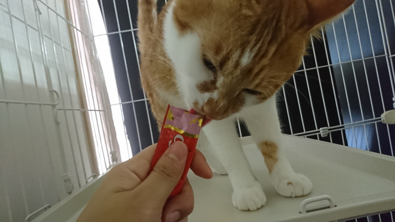 あっという間にお泊まり最終日となりましたが、お店にも少しずつ慣れてきたようでチュールをぺろぺろ