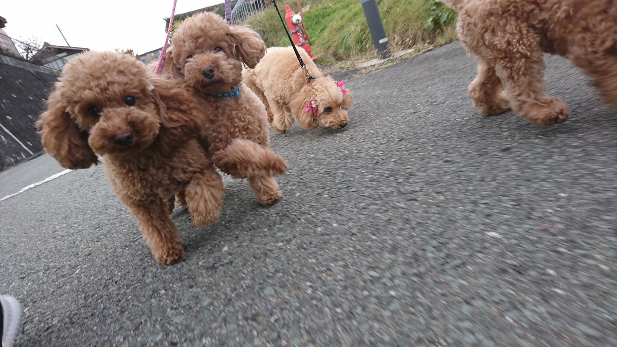 プードルの花ちゃん&空ちゃん&みかんちゃん&ももちゃん お泊まりの様子