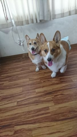 コーギーのルークちゃんカイトちゃん お泊まりの様子