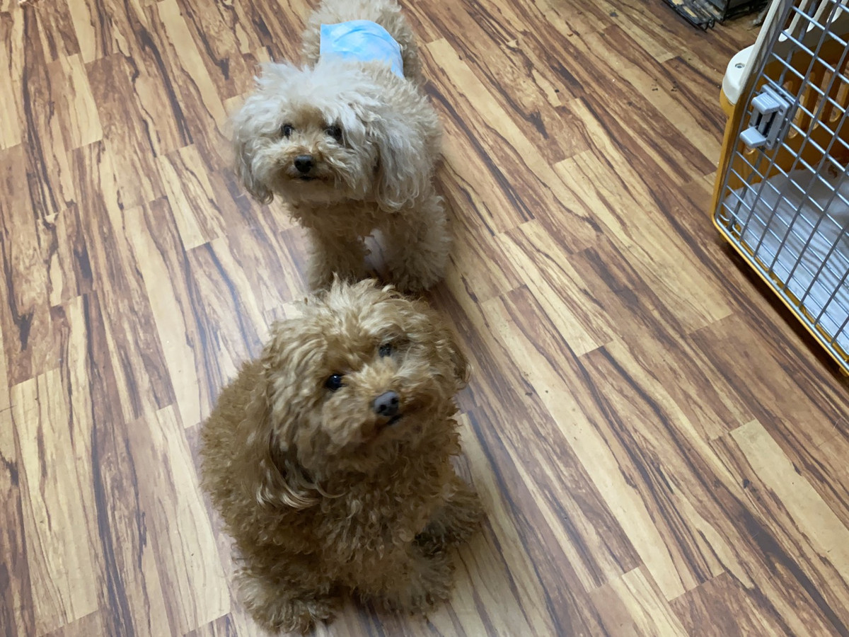 プードルのポップちゃん&ペリーちゃん お泊まりの様子