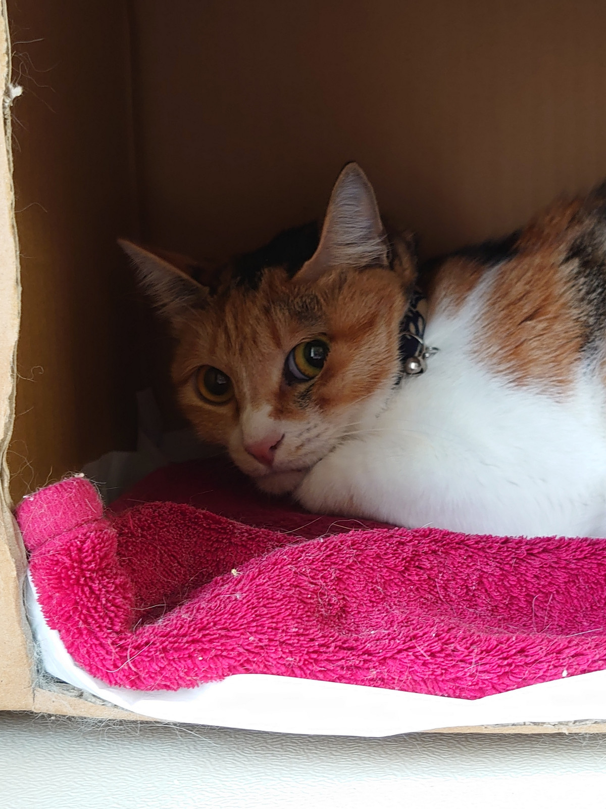 一夜かけた今日も朝から箱の中にこもっているココちゃん😳