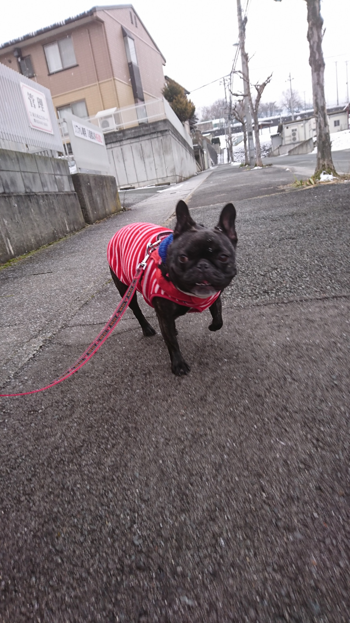 今朝はぐっと冷え込んだのであんこちゃんも防寒対策をして元気いっぱいお散歩に出発