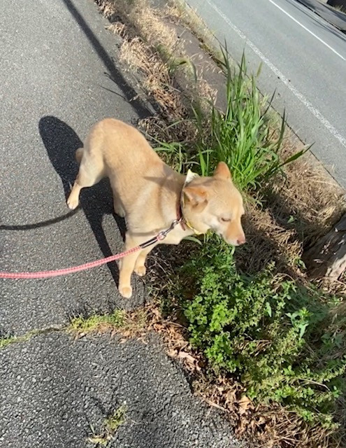 今日は、お天気の良い中葉っぱの匂いをくんくん嗅ぎながら近所を散策してきました!😊✨おトイレはバッチリしてくれましたが、ごはんはあまり進まない様子でした😥