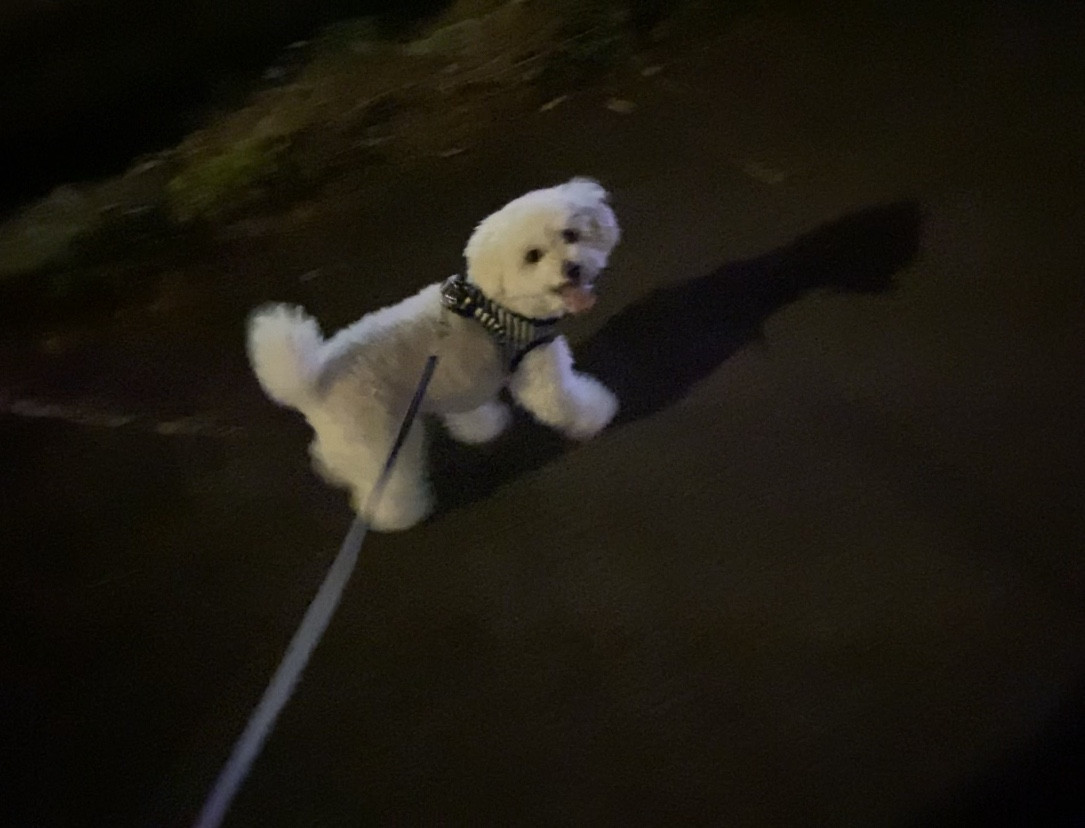 お外は暗くなってしまいましたが、急いでお散歩へ💨にこにこ楽しそうでした!