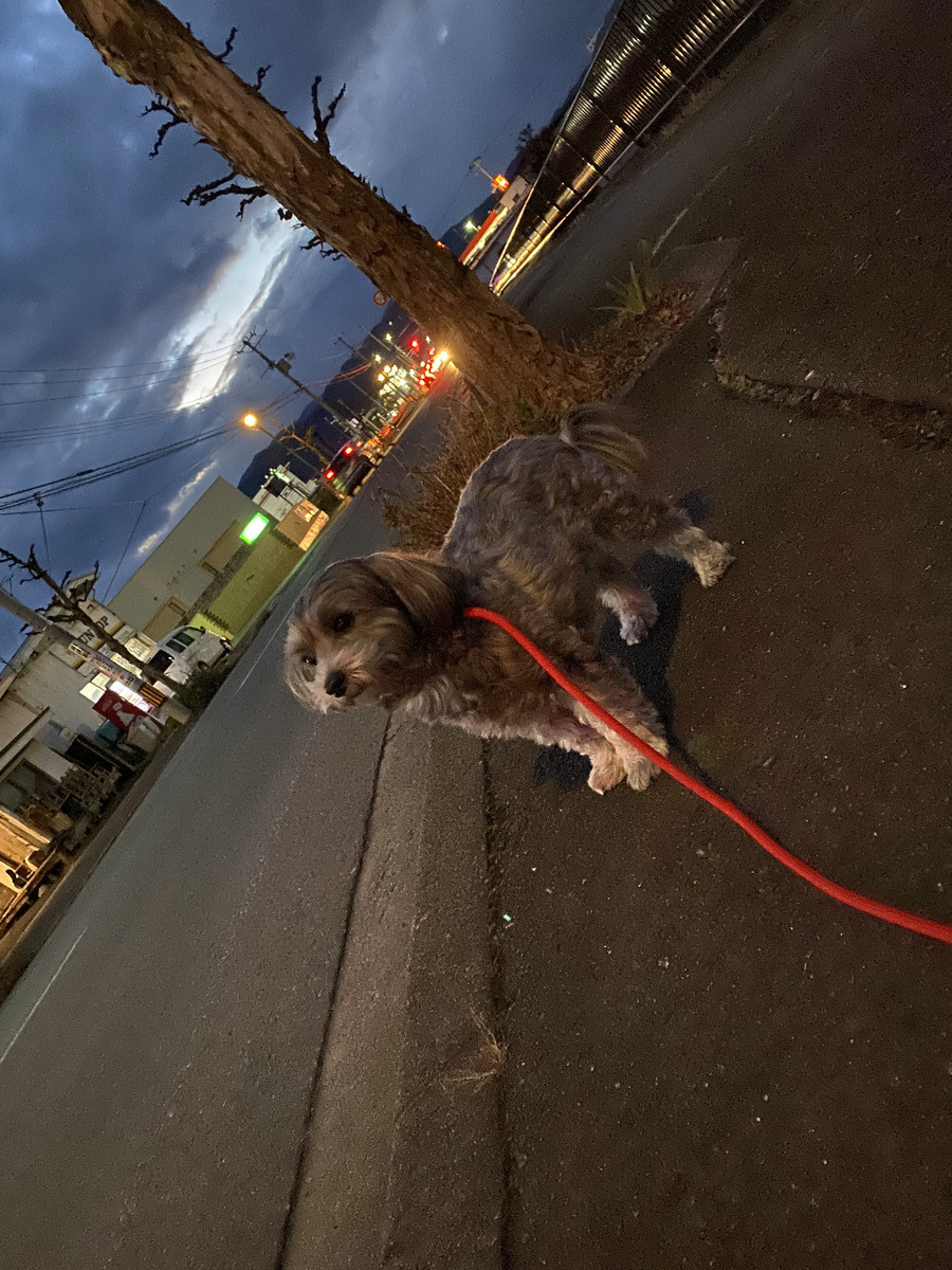 夕方少し暗くなってからのお散歩になってしまいましたが、元気に出発
