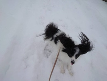 お店に帰る頃には下回りに雪玉ボンボン沢山つけて歩きずらそうでしたがロビンちゃんは物凄く満足気な笑顔をスタッフにおくっていました