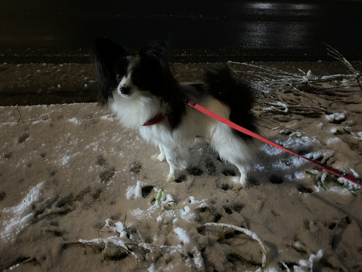 ちょうど雪も止み、シャーベット状の道は少しずつ凍って来ていたのであまり濡れることなくお散歩に行けました