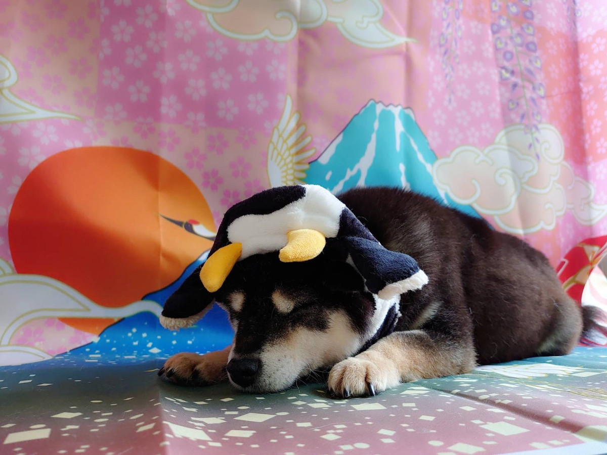 写真撮影では眠さとの戦いのようで牛さんの帽子を被る頃にはスヤスヤ夢の中へと向かっていました