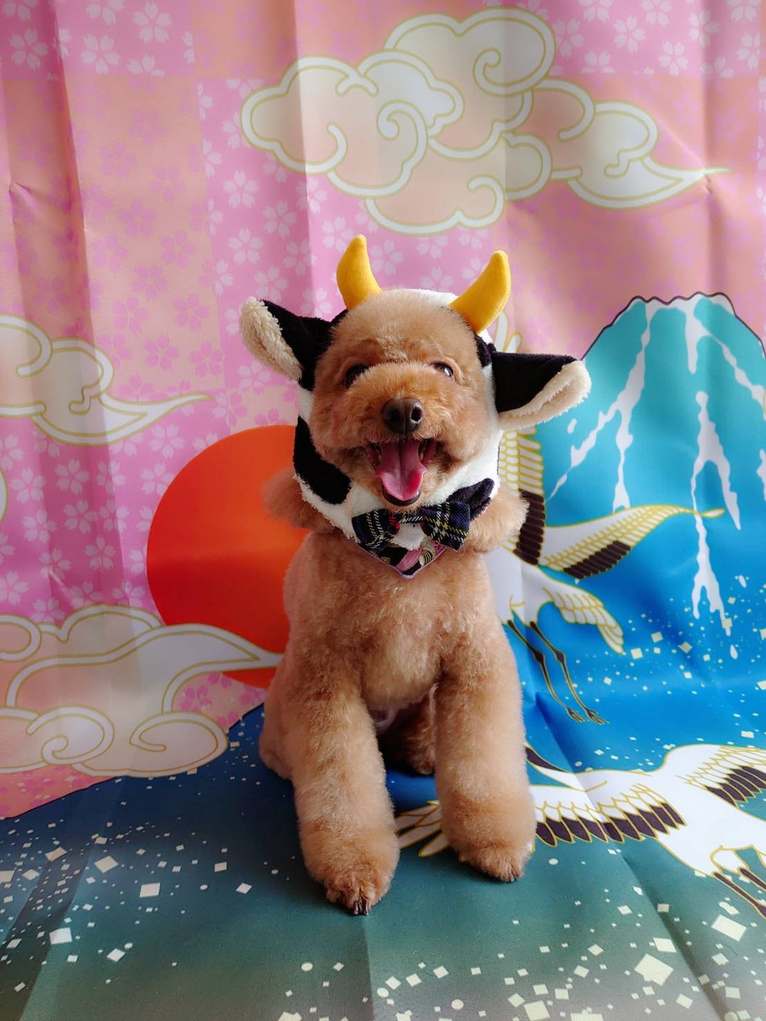 最後は牛さん帽子を被って可愛くハイチーズ