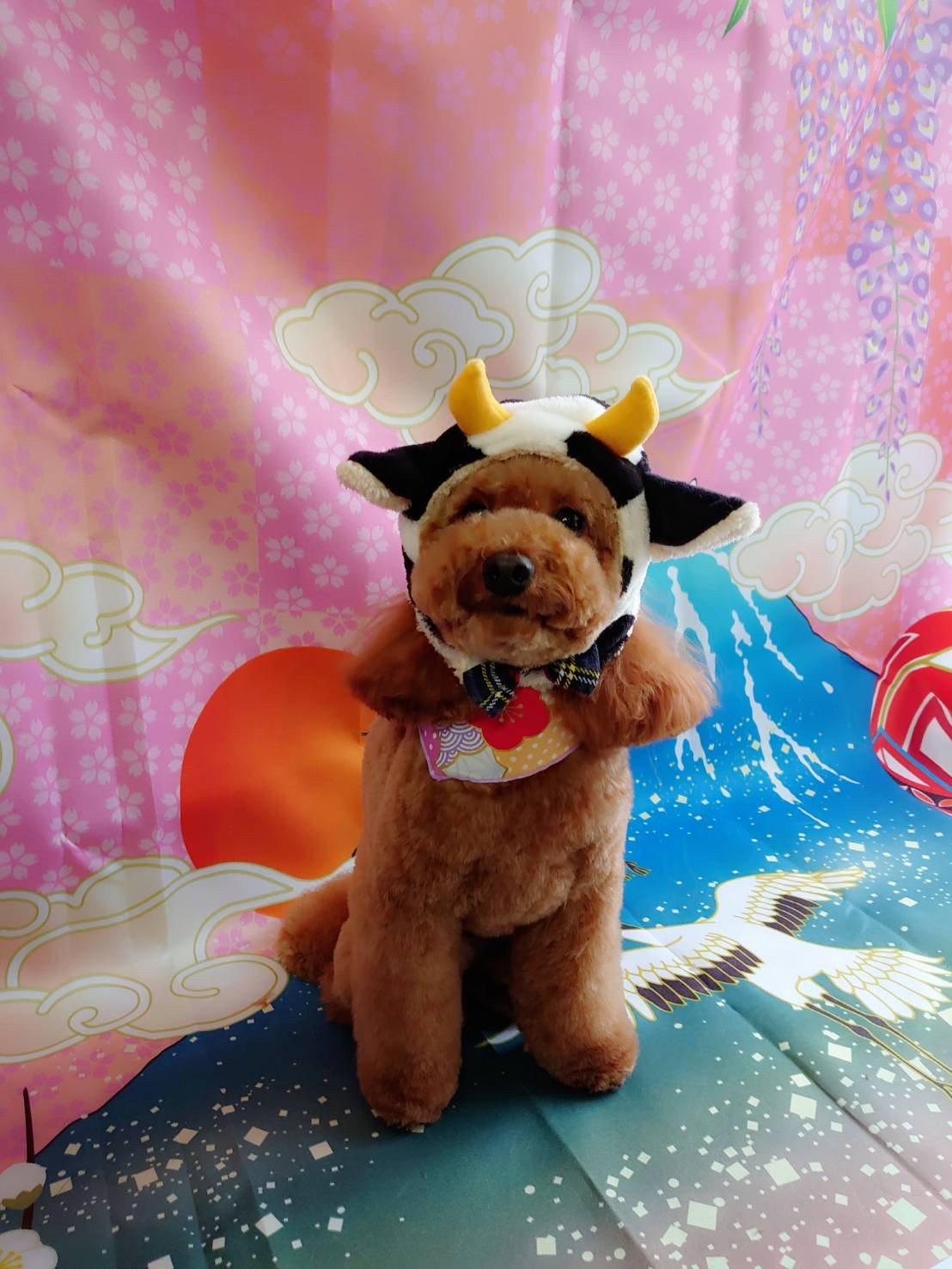 最後は牛さん帽子を被って可愛くハイチーズ