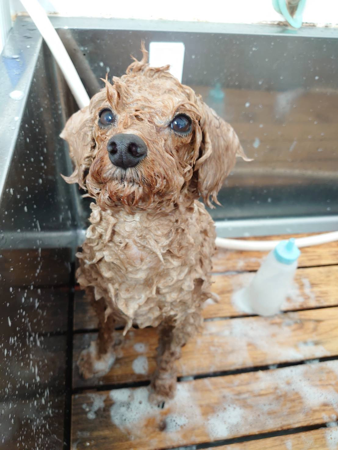 切り替えが早いそらちゃん、作業もとってもお利口さんさせてくれて泡泡モコモコお風呂へLet's Go