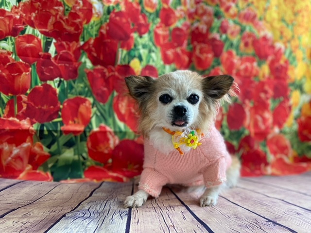 シャンプー中はずっと立って頑張ってくれて、撮影時には、お花畑にお似合いなかわいいピンクのお洋服を着てパシャリ!📸✌🏼️😊
