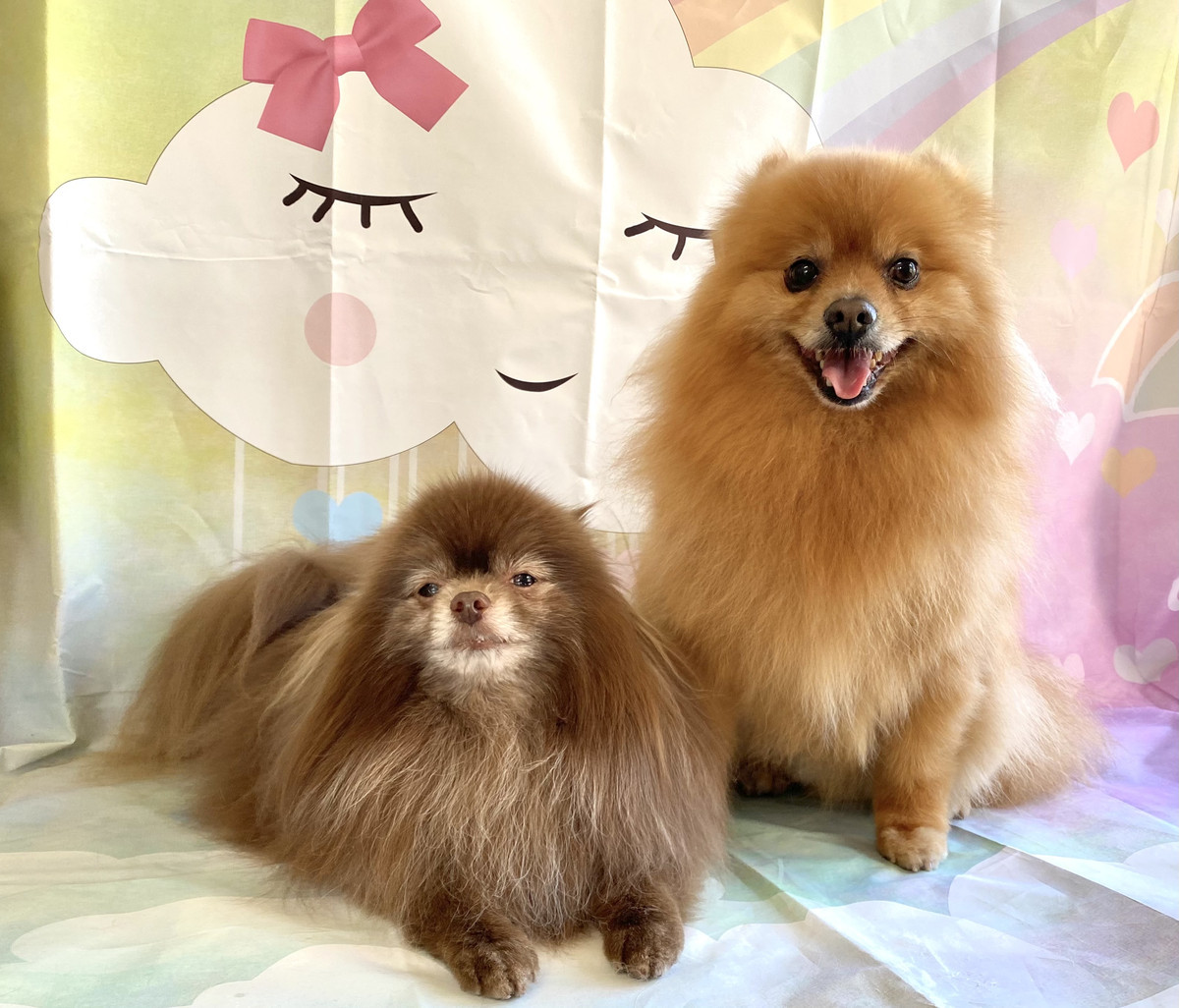 ポメラニアンのくりちゃん&くるちゃん グルーミングコース 部分カット