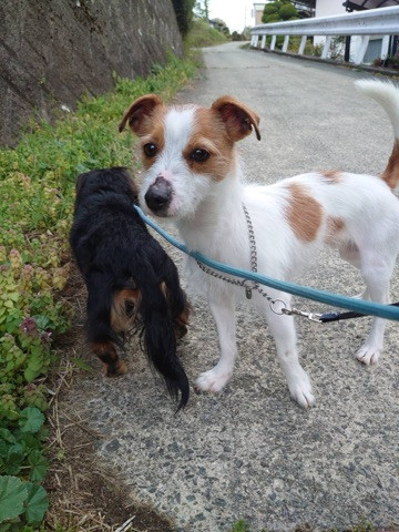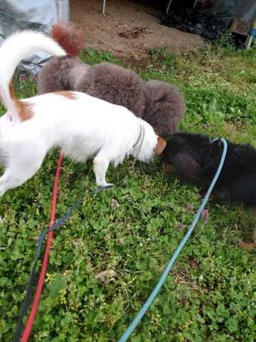 夕方は他のワンちゃんと一緒に仲良くルンルン遊びながらお散歩に行って、道行く人にも元気いっぱい挨拶して沢山褒められたね